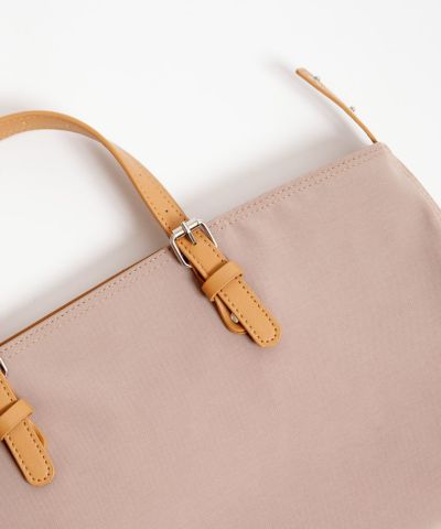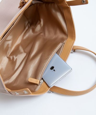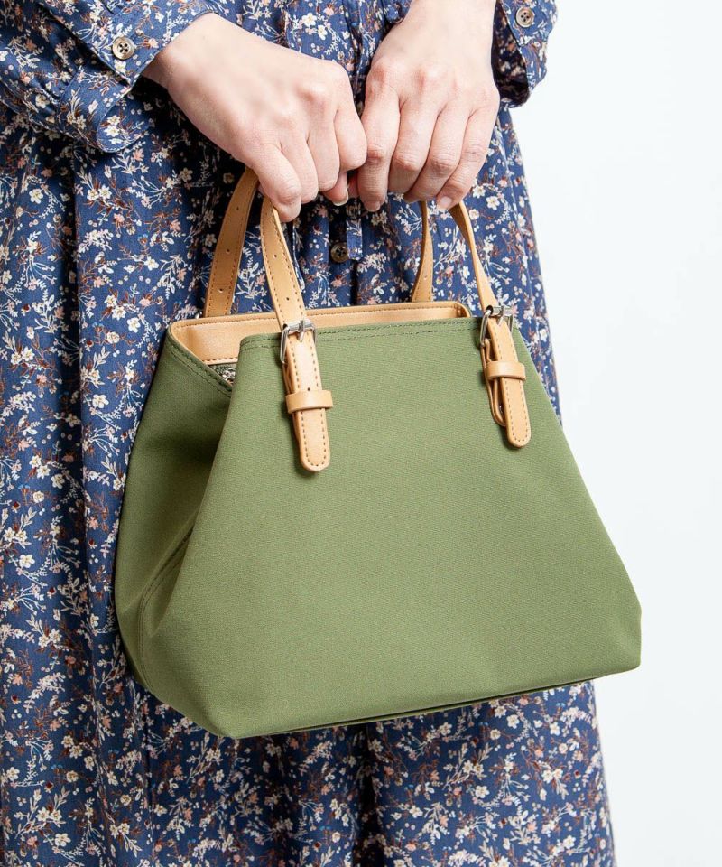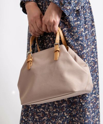 持ち手に合成皮革がアクセントになり、カジュアルでありつつも上品なアイテムです。