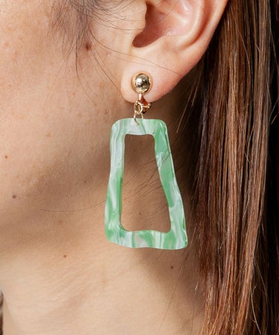 【デザイン】 ・大振りなデザインが、目を引くイヤリング。 ・アクリル樹脂素材でとても軽いので、ノンストレスで付けられます。 ・大きいデザインながら、クリアなマーブル模様で、派手すぎず、クーディネートのアクセントになります。