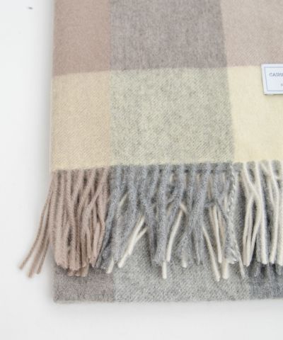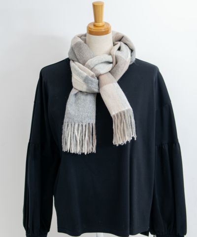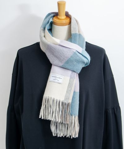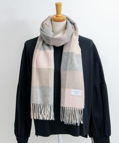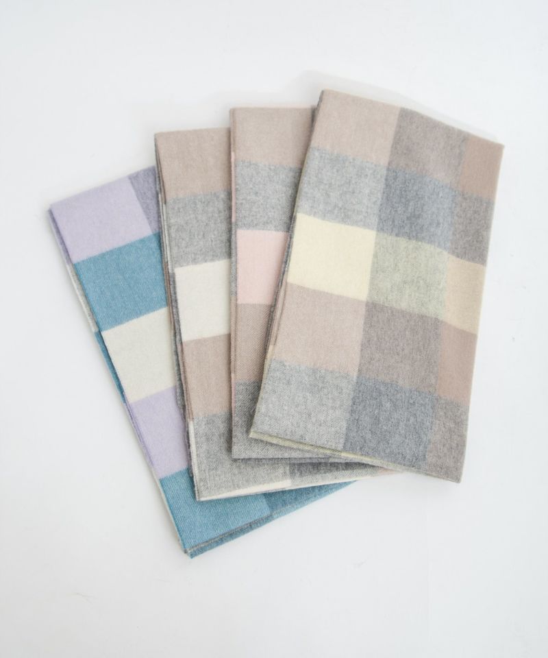 繊維の宝石、カシミヤ100%ストール。 良質なカシミヤが採取される、内モンゴル製のホワイトカシミヤのみを厳選して使用。 天然アザミを使用した起毛加工を施し、肌触りの良さを最大限引き出しております。 大判ストールで、包み込まれるような、軽さと暖かさを体感いただけます。 優しい色合いのブロックチェック柄で、秋から冬にかけのスタイリングのポイントに。