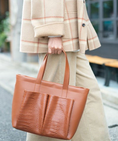 【ファブリック】 ・軽量の合成皮革使用 ・同色で合わせた、クロコ調の型押しポケットで高級感があります。