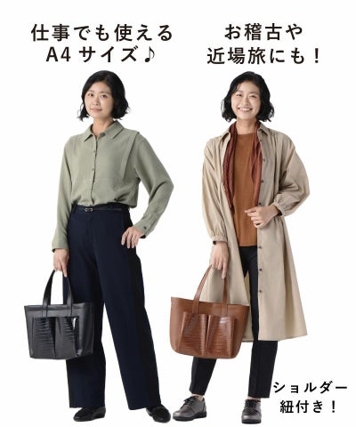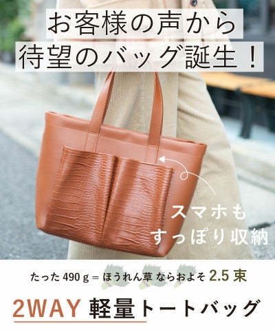 【デザイン】 ・シンプルなデザインのトートバッグ。 ・取り外せるショルダー紐付きで、ワンショルダーにも手提げにも!! スマホがすっぽり入る前面ポケットは、出し入れラクラク。 大きめトートなのに、重さ490gの軽量仕様!