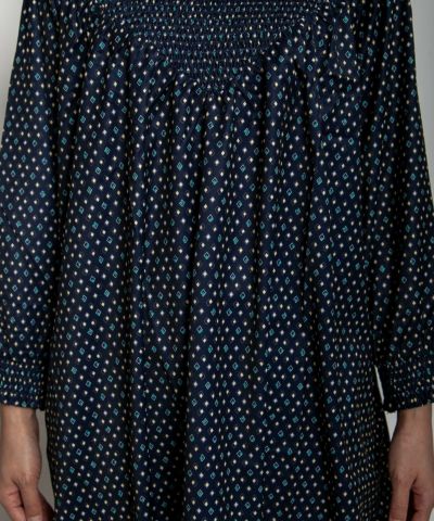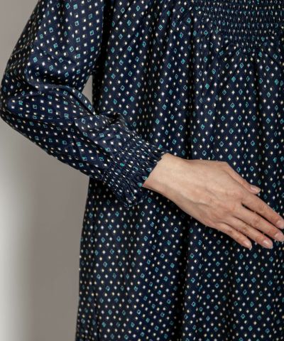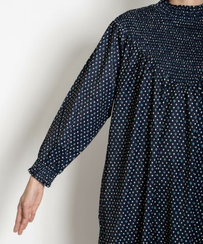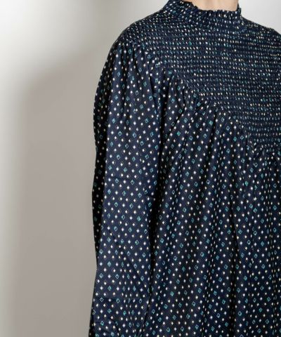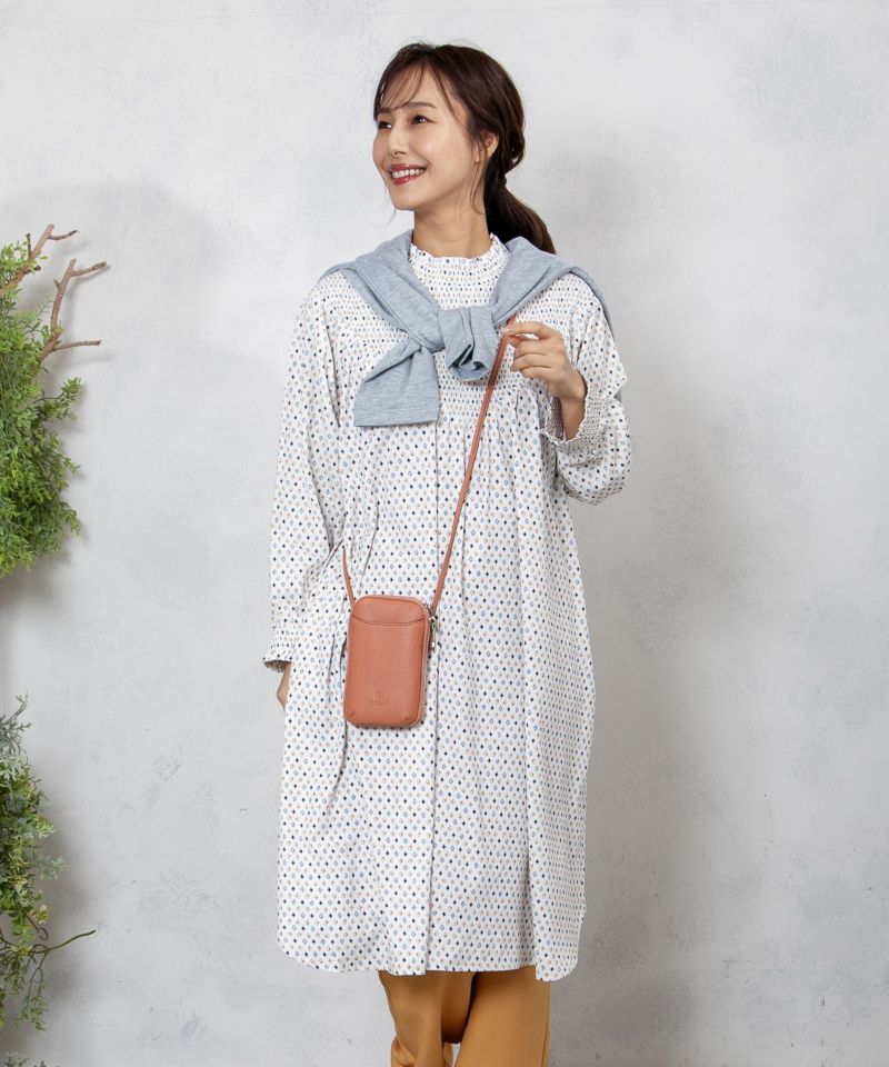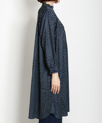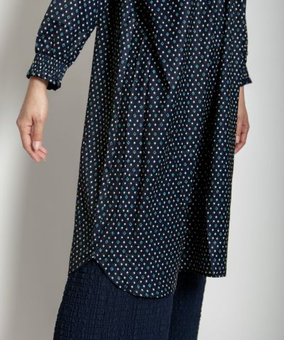 細かいプリントに、ポイントとなる色が使用されているため、アウターや重ね着するボトムスと色を合わせた、カラーコーディネートもお楽しみいただけます。