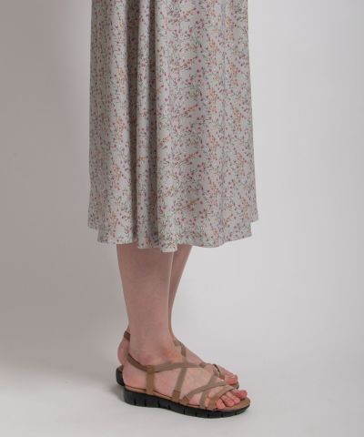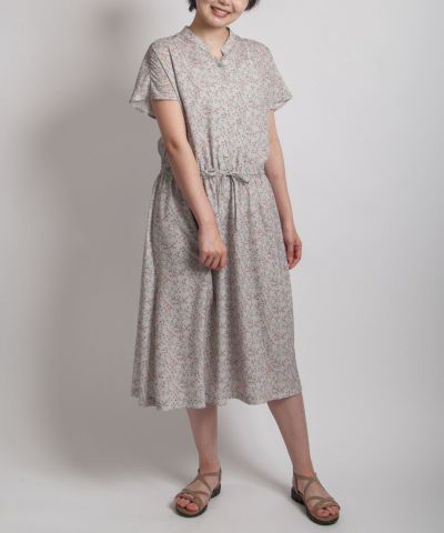 リーン色のリーフ柄が大人かわいい印象のプリントワンピース。