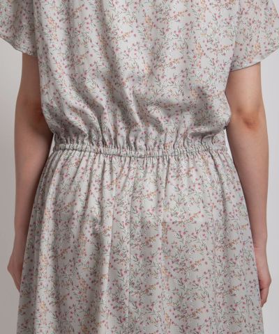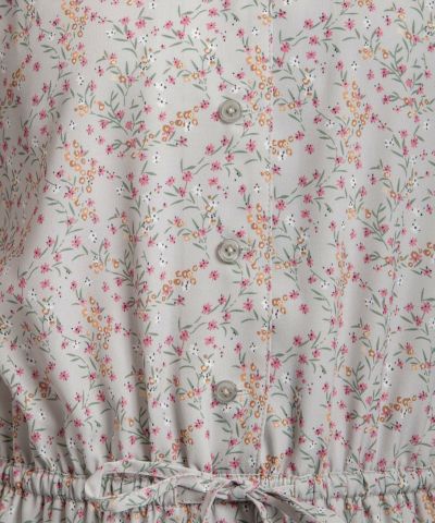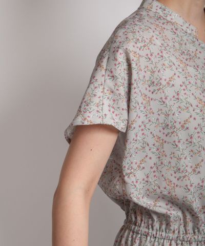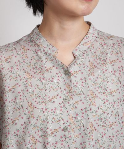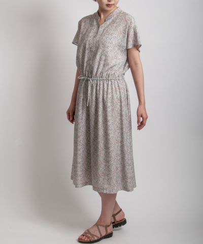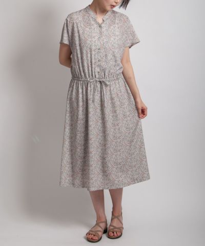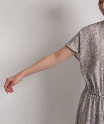 小さめの衿とフロントボタンのクラシックなラインのフレンチスリーブ。