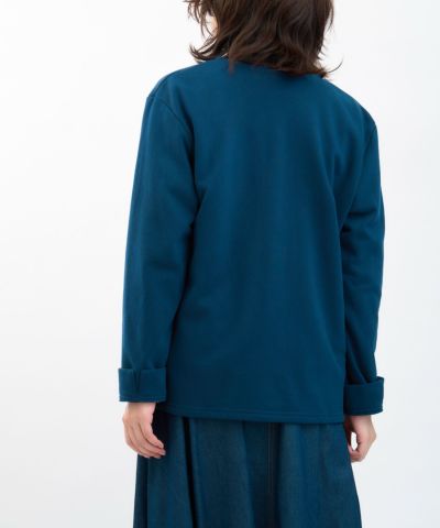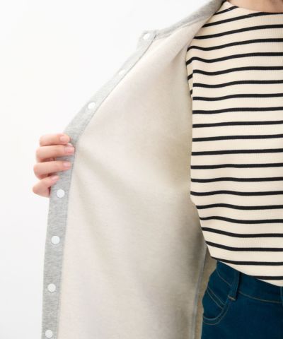 裏起毛で型崩れしにくく、熱を逃しにくい素材なので、1枚でも暖かく着れます。 旅行先などでの急な気温変化にも対応できるアイテムです。 拘りポイントは、ボタン間隔のピッチを短くしてボタンを9個にし、シンプルながらもデザイン性を持たせた所です。 ボタンにはマークさんが旅をテーマに立ち上げたブランド『BN20(べネバン)』のロゴの頭文字である『B』が刻印されているなど細かい所にも拘っています。 マークさん曰く、『デニムやチノパンなどカジュアルなパンツに合わせてTシャツの上からさらっと羽織るだけでもいいよね』との事! 合わせやすい、使い勝手のいいアイテムに仕上がりました。 べネバンコラボのワッペンが右胸につきます。 ※モデル写真はサンプルで撮影したのでついていません。