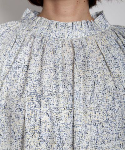 プリーツデザインのハイネックとツイード風プリントでクラシックに。 明るいベース色に、細かいツイード風のプリントが施され、無地とは一味違う洗練さを演出。 プリーツハイネックは、アクサせりーが無くても、襟元を華やかに魅せてくれます。
