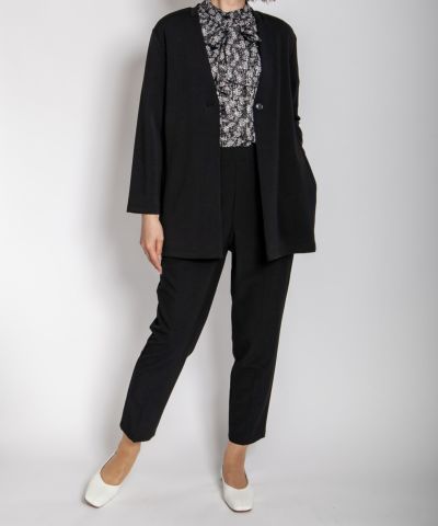 首元のリボンタイは、きちんと結ばず、前に垂らして立てラインを強調するのも◎ ジャケットやジレと合わせれば、綺麗めスタイルに。 デニムと合わせ、カーディガンと合わせれば、大人カジュアルスタイルに。