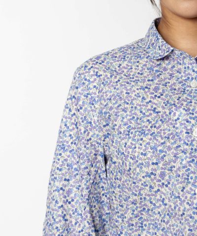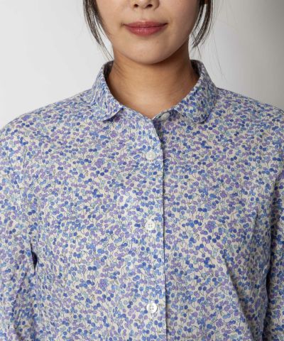 人気フラワープリントシャツシリーズ。 小さなベリー柄が可愛らしく、発色も明るめのプリントで、華やかな印象に。 小さめの柄なので、普段あまりプリントを着ない方にもオススメです。 デニムやシンプルなボトムスと合わせても映えるシャツです。 フラワープリントとは、少し違った印象をお楽しみいただけます。