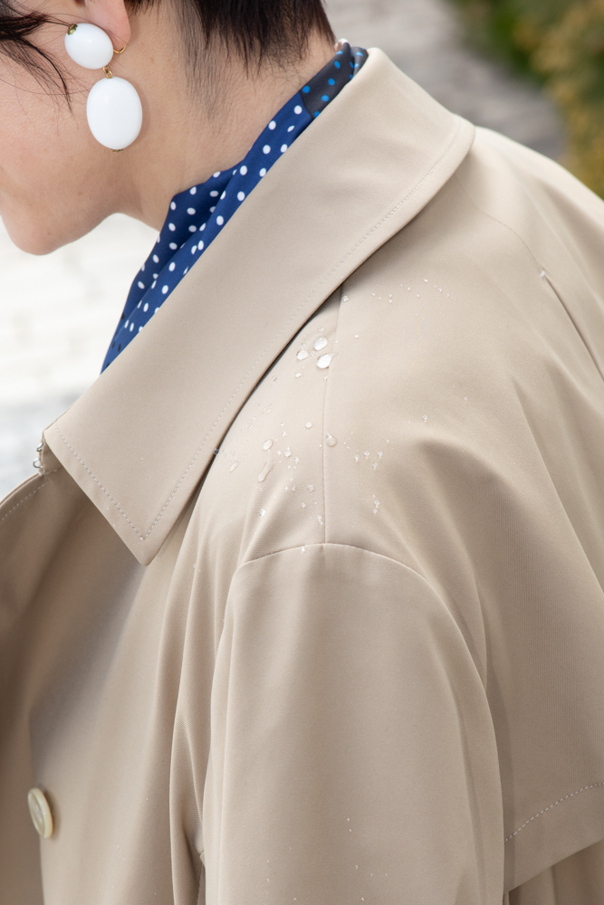 コートには撥水効果あり。お出かけ先での天候の変化にも安心。