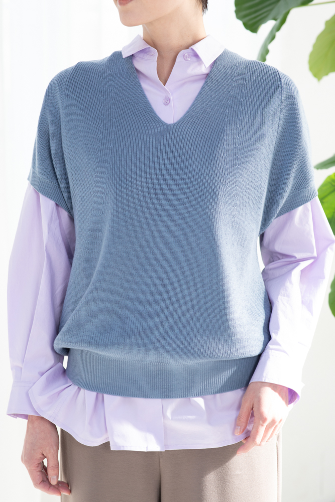 立体的に考えられた編み目が美しいニットベスト