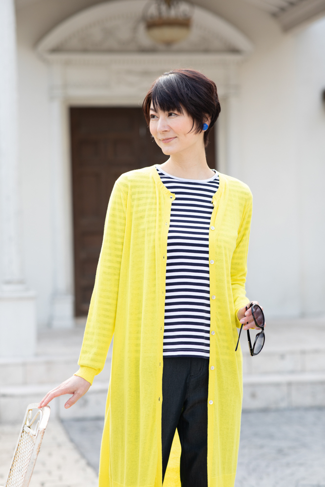 明るい元気カラーで品のよいコーディネートが楽しめる、新シーズンのハヴァナイストリップ。ビビットなカラーは、羽織るだけで瞬時に印象が変わります。