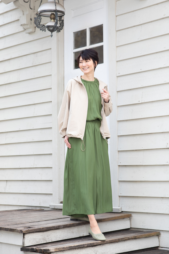 パーカーの中は、軽くてシワになりにくいギャザーデシンのセットアップ。取り扱いがとても楽です。