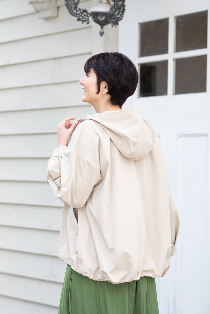さっと羽織れる軽やかな大人パーカーは、なんと250gの超軽量。後ろ身頃に長さとボリュームを持たせたデザインは360度どこから見てもスタイリッシュ。気になる体型カバー効果が実感できます。