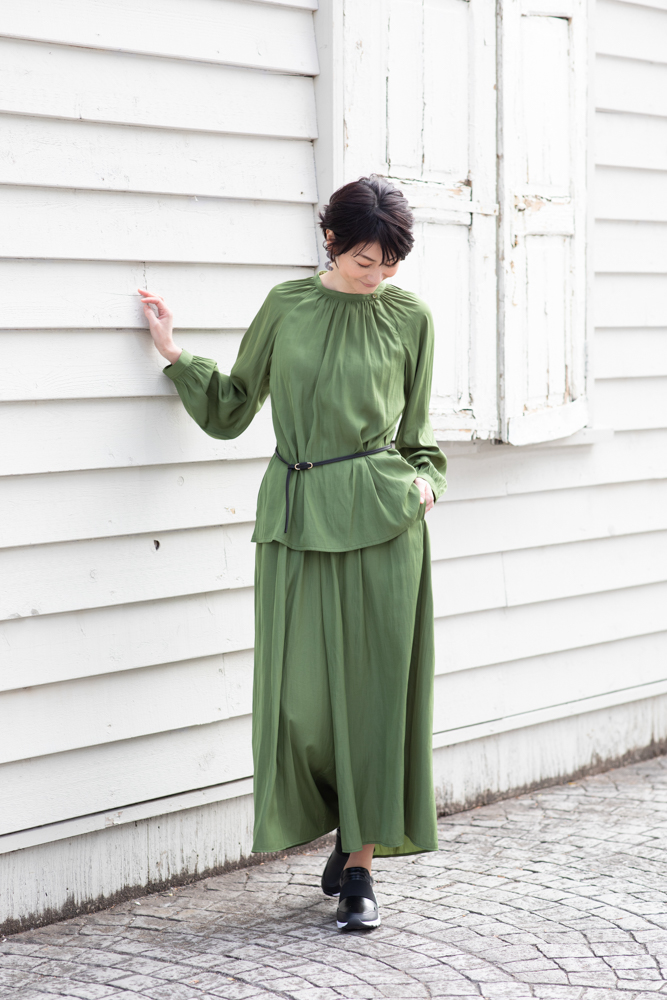 袖口のタックギャザーもおしゃれなポイント。キレイ目のスタイルにも使えます。