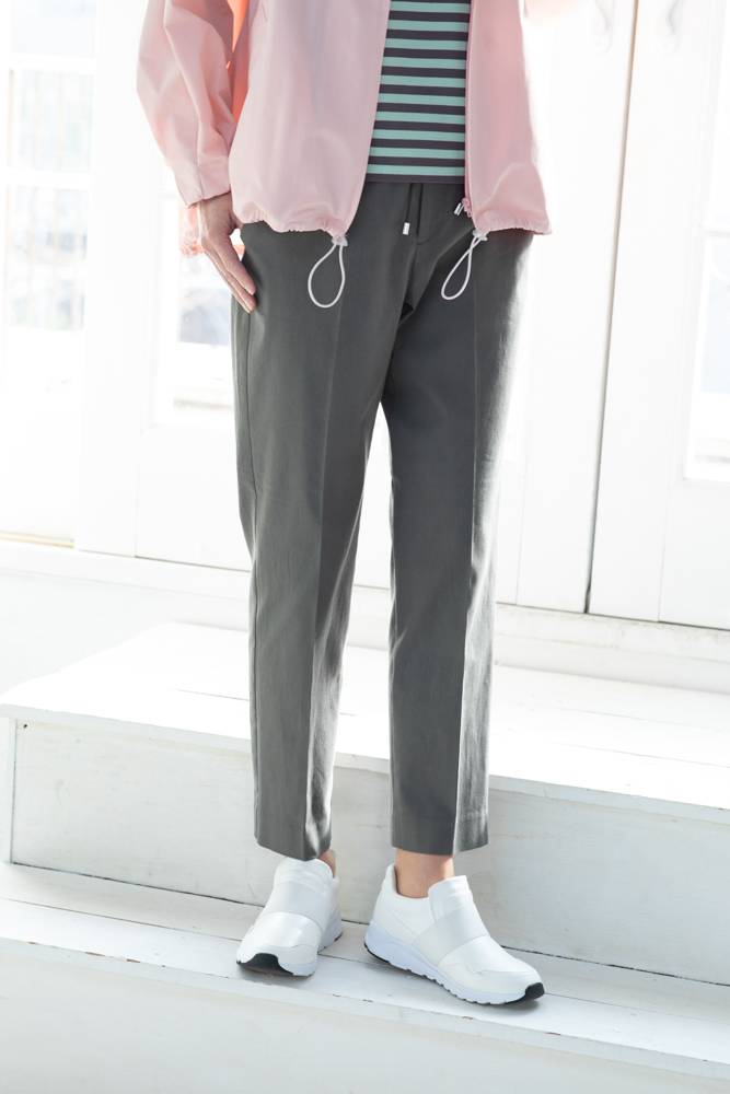 合わせたパンツは、ストレッチの効いたコットンツイル素材。この春大人気のテーパードデザイン。夏まで使える素材で新登場。